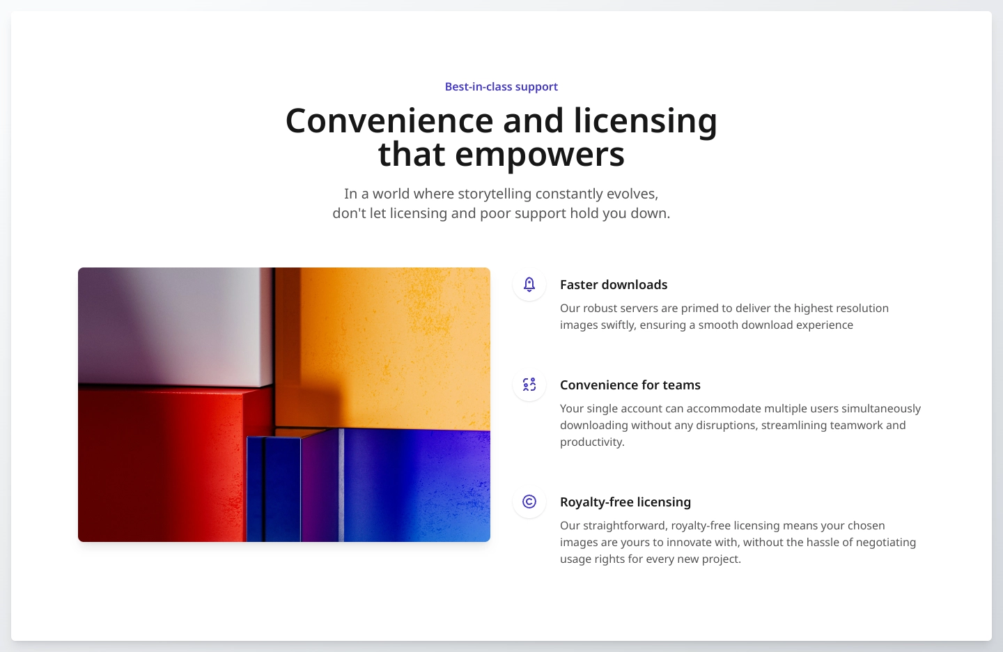Build a responsive 2-column features section component that can show an image on either the left or right column